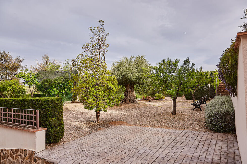 En los exteriores del chalet tenemos un espacio ajardinado con piscina privada, zona de juegos, así como un pequeño espacio de ocio para los más pequeños con una cama hinchable y columpios.