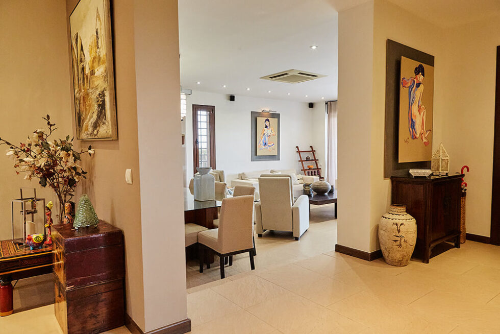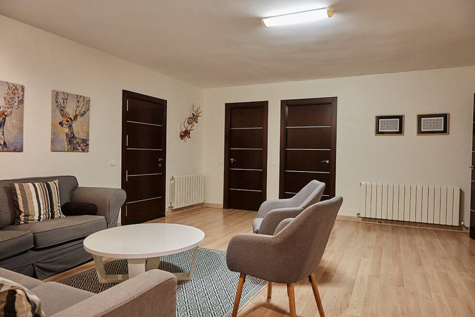 La vivienda tiene una capacidad para 12 personas. Dispone de seis dormitorios, dos salones-comedores equipados con todo lujo de detalles, cocina equipada con todo lo necesario, cuatro baños (uno de ellos con bañera de hidromasaje), zona de lavandería, garaje con capacidad para tres vehículos.